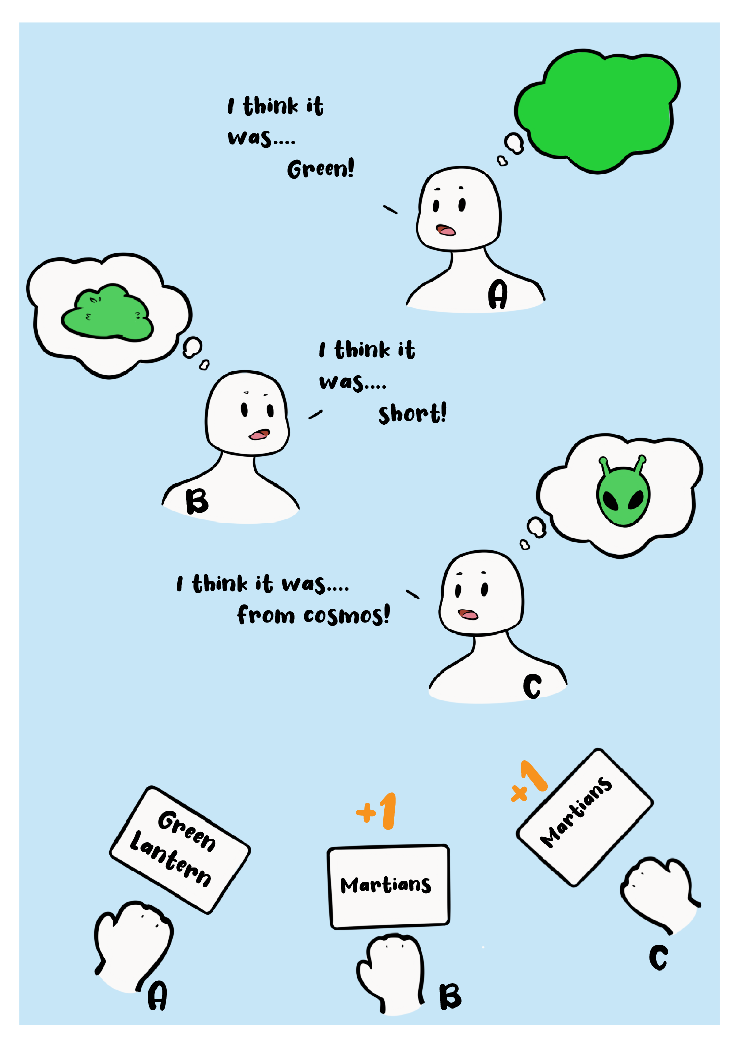 - If no dream is in majority (every player wrote different thing), the round concludes with 0 points.